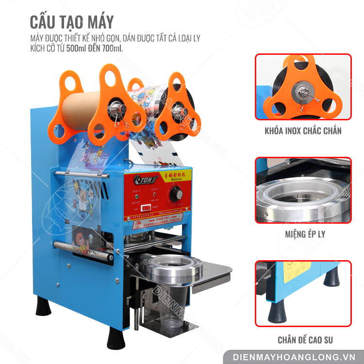 - Máy thích hợp để sử dụng dán miệng ly trà sữa, nước mía, ly bắp rang bơ, cafe mang đi, cháo dinh dưỡng,…