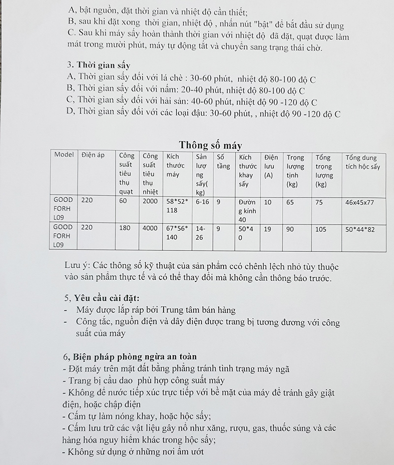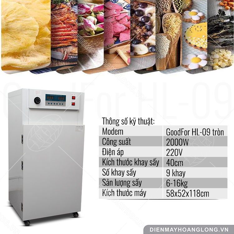 Thông số kỹ thuật máy sấy nông sản GoodFor HL-09 tròn: