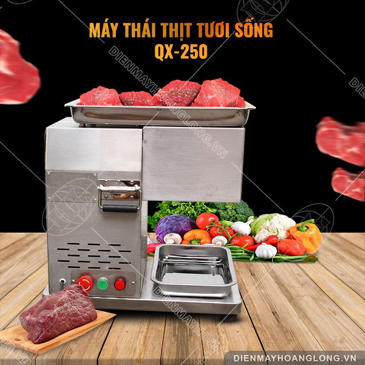Với công suất mô tơ 2200W thì máy thái thịt tươi sống QX-250 có thể hoạt động liên tục được và năng suất lến đến 300kg/h.