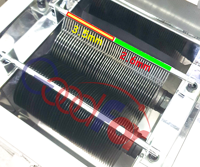 Máy thái thịt QX-250x2 có 2 loại lưỡi dao, kích thước 2.6mm và 3.5mm hoặc 2.6mm và 4.5mm.