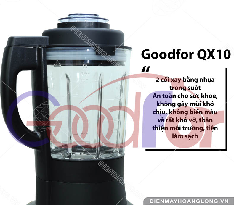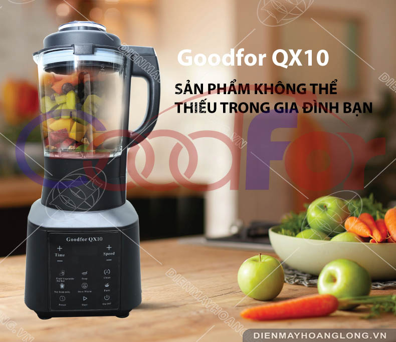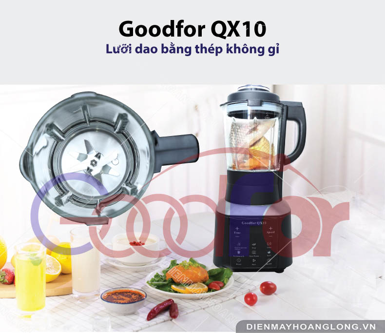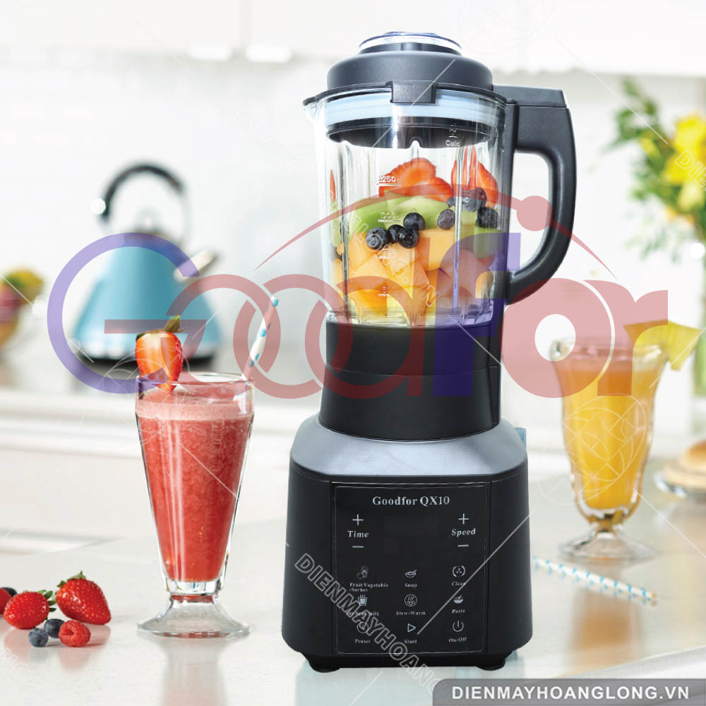 Máy xay và nấu đa năng Goodfor QX10 không những xay thực phẩm mà còn nấu chín ngay trong quá trình xay, với nhiệt độ sôi có thể điều chỉnh từ 60 đến 100 độ C, thời gian cài đặt tới 59 phút, chế biến được nhiều thức ăn như: soup, cháo, nấu đậu nành, hấp rau củ, xay thức ăn đông đá.