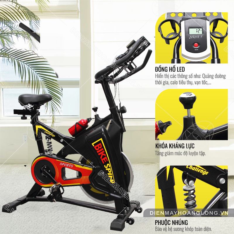 SpinBike trang bị kháng lực dễ dàng điểu chỉnh cho phép người tập luyện tăng hoặc giảm mức độ kháng lực giúp tập luyện hiệu quả hơn cho mục đích tiêu thụ calo và tăng cường thể lực.