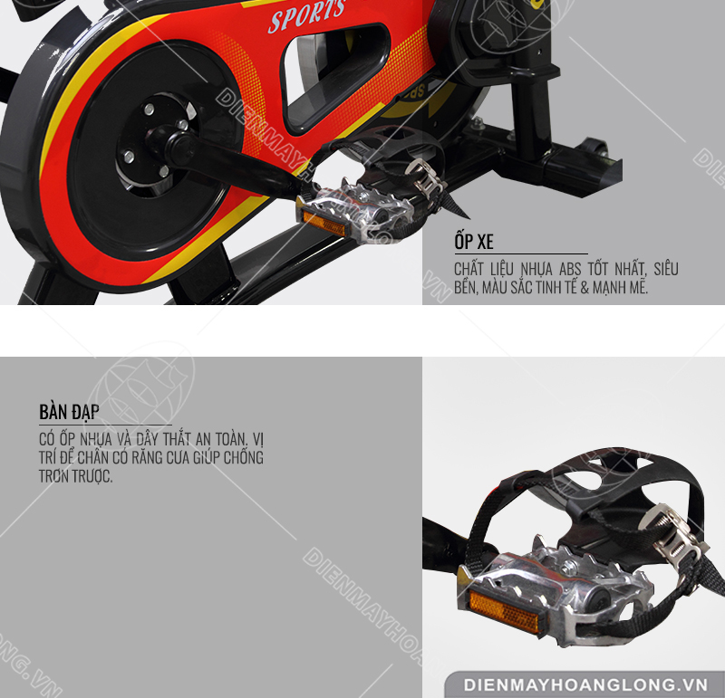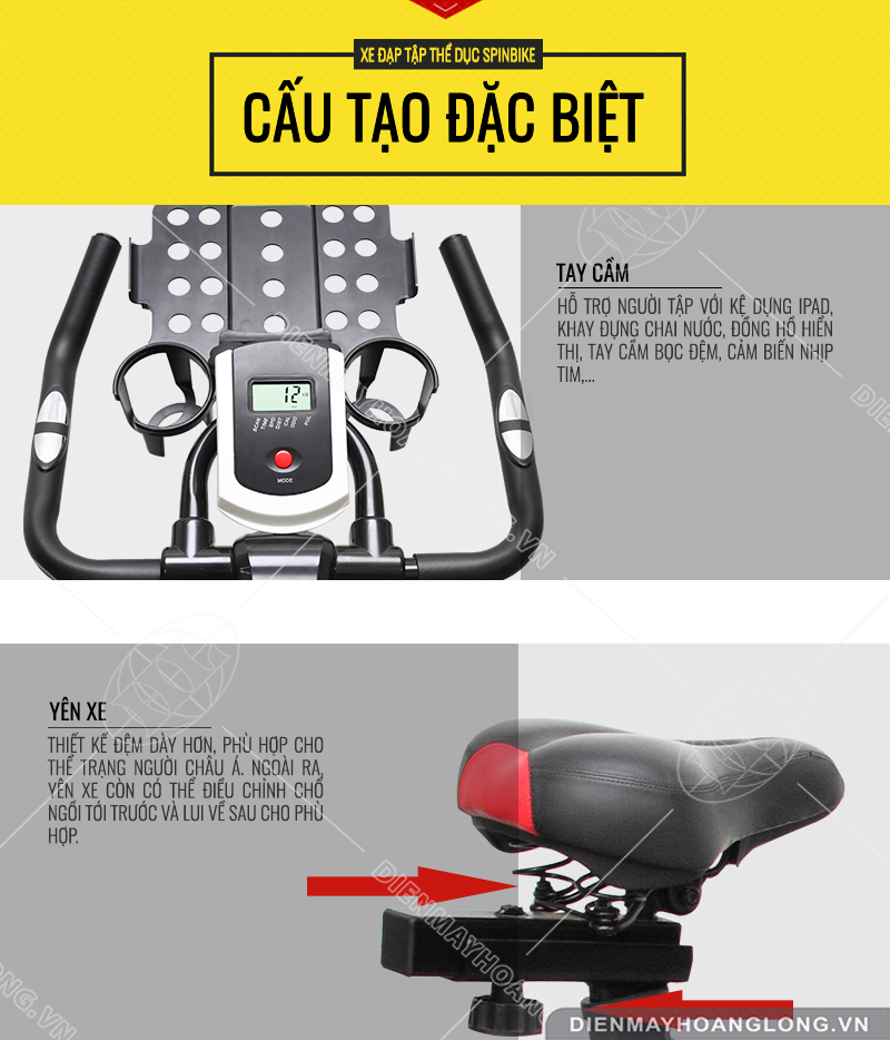 SpinBike có thiết kế đẹp mắt, yên xe và bàn đạp được đặt giống như các xe đạp thường ngày sử dụng tạo cho bạn cảm giác như đang đạp xe đi trên đường. Yên xe dễ dàng điều chỉnh để đảm bảo bạn có thể chọn được vị trí ngồi phù hợp nhất với chiều cao của mình. Bàn đạp giữ chân tại chỗ giúp việc tập luyện trở nên an toàn và dễ dàng hơn.
